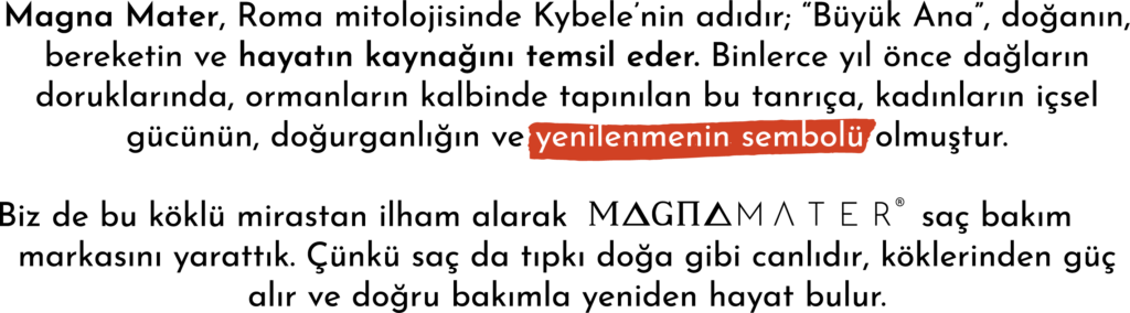 Magna Mater® profesyonel salon tecrübesini ev bakımına taşıyan arındırma, dengeleme ve pürüzsüzlük odaklı bir saç bakım markasıdır.