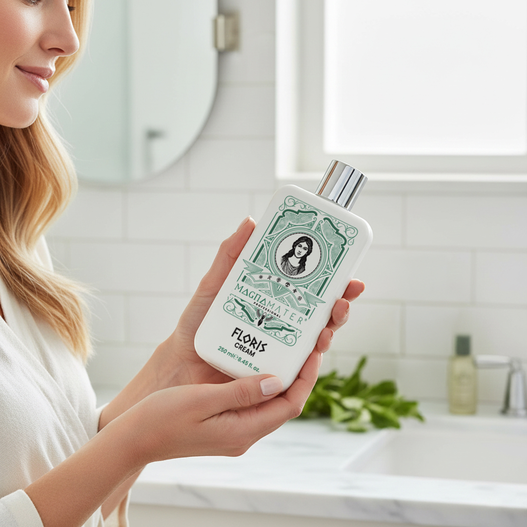 Floris Cream, Magna Mater’ın bakım ritüelinde “son dokunuş” etkisini hedefleyen durulanmayan profesyonel bakım kremidir. Saçta ağırlık hissi oluşturmadan, gün içinde daha yumuşak, daha pürüzsüz ve daha kontrollü bir görünüm elde etmeye yardımcı olur.